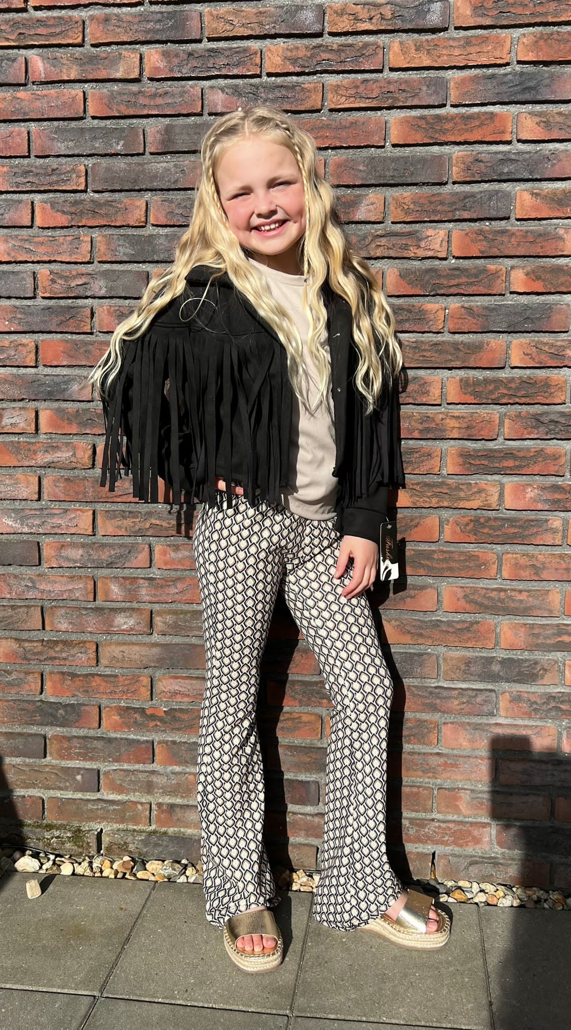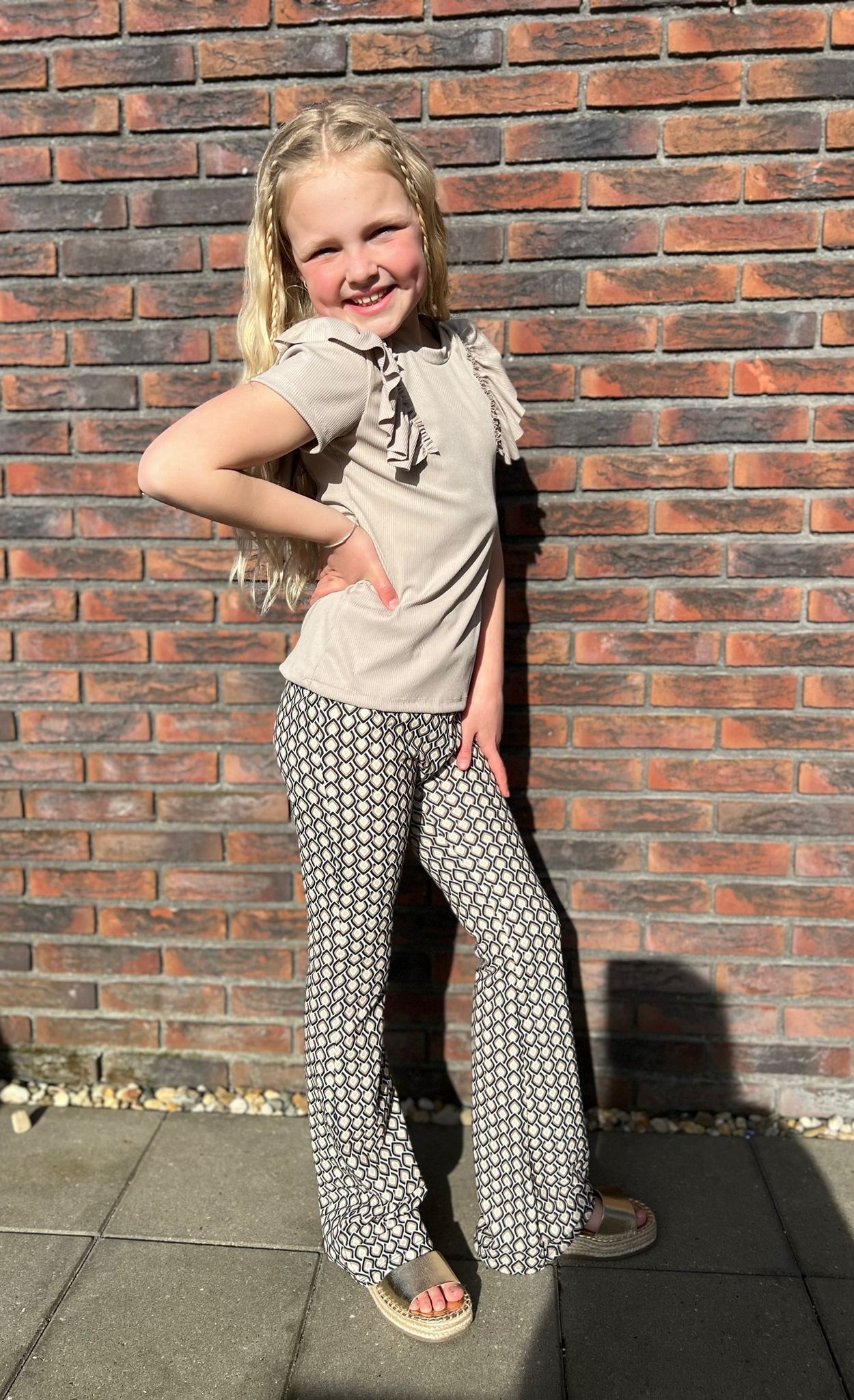 Dit meisjes setje bestaat uit een T-shirt en een bijpassende Flair broek het zit zo comfortabel.